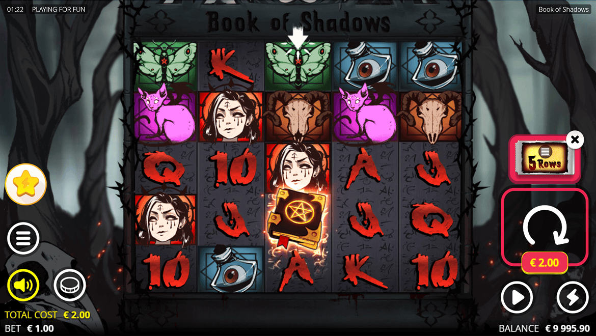 Book of Shadows is a dark interpretation of the classic Book mechanic from Nolimit City. The game offers free spins with an expanding special symbol that can completely cover the reels. High volatility and a minimalist, dark style make the slot austere and tense. Suitable for players who enjoy classic mechanics with a more intense presentation.